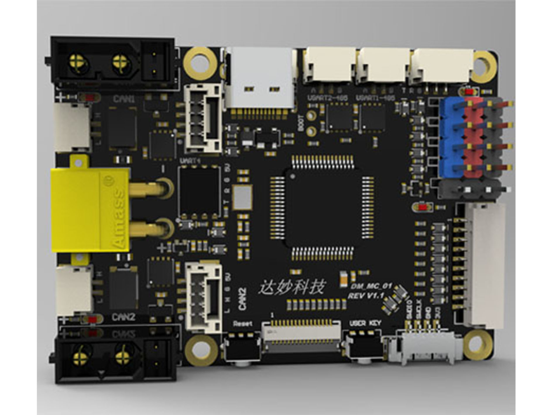 DM-MC-Board01主控芯片是STM32F446RCT6,該開發(fā)板是一款面向機(jī)器人控制的主控,具備防反接和緩啟動等多重防護(hù)。并配備了高性能IMU模塊(BMI088)以及1.69寸240*280分辨率的LCD模塊。該主控具備兩個CAN接口、兩個高速RS485接口、一個USB接口、以及SBUS、PWM等豐富接口??梢耘浜线_(dá)妙科技出品的關(guān)節(jié)電機(jī)、直驅(qū)電機(jī)等產(chǎn)品制作AGV輪式機(jī)器人、平衡車、足式機(jī)器